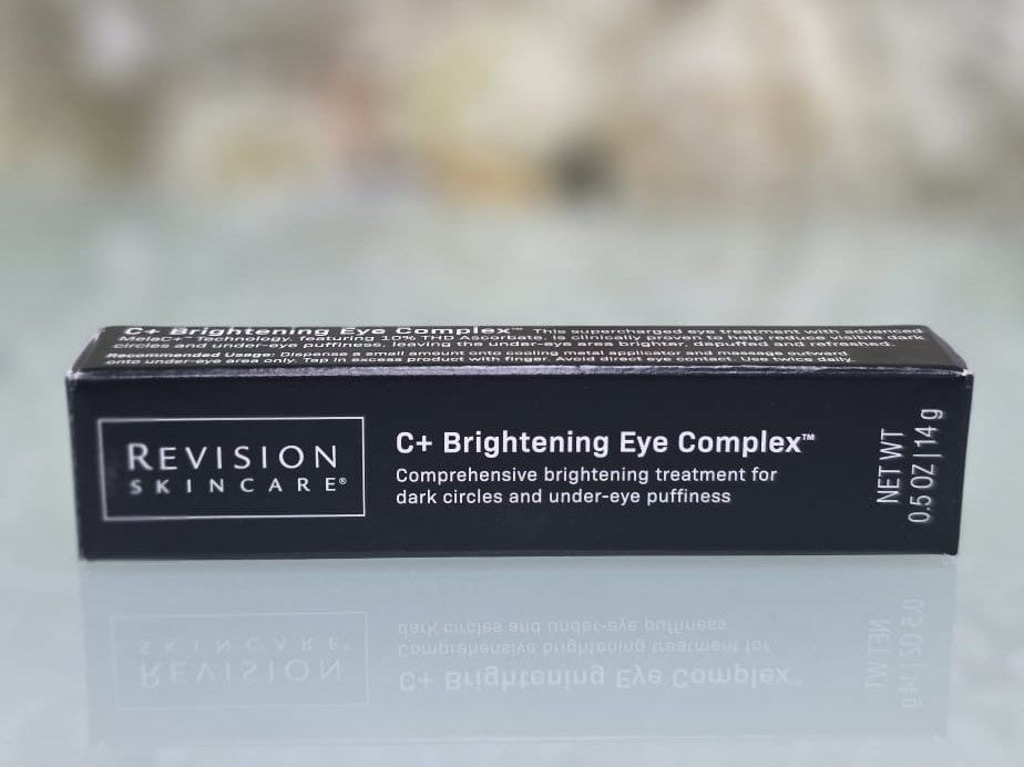 Revision Skincare® C+ Brightening Eye Complex is a clinically formulated, antioxidant-rich eye treatment designed to visibly brighten dullness, firm crepey skin and soften fine lines around the eyes. Powered by Revision’s patented 15% THD Ascorbate (a highly stable, lipid-soluble vitamin C) along with peptides and hydrating botanicals, this advanced formula targets multiple signs of ageing with remarkable precision.